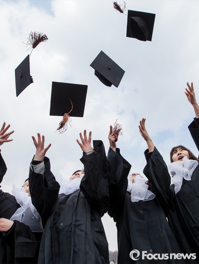 (서울=포커스뉴스) 29일 오후 서울 서대문구 이화여자대학교에서 열린 2015학년도 전기 학위수여식에 참석한 졸업생들이 학사모를 던지고 있다.