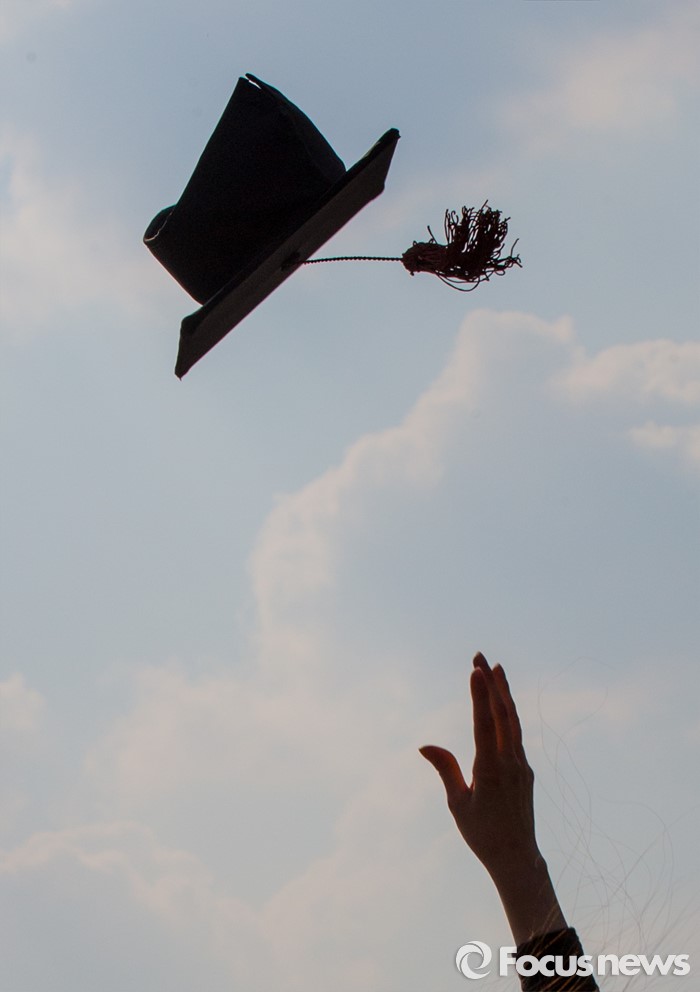 (서울=포커스뉴스) 29일 오후 서울 서대문구 이화여자대학교에서 열린 2015학년도 전기 학위수여식에 참석한 졸업생들이 학사모를 던지고 있다.