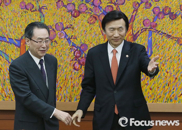 (서울=포커스뉴스) 29일 서울 세종로 정부서울청사 외교부에서 윤병세 외교부 장관(오른쪽)가 우다웨이 中 외교부 한반도사무특별대표(왼쪽)에게 자리를 안내 하고 있다.