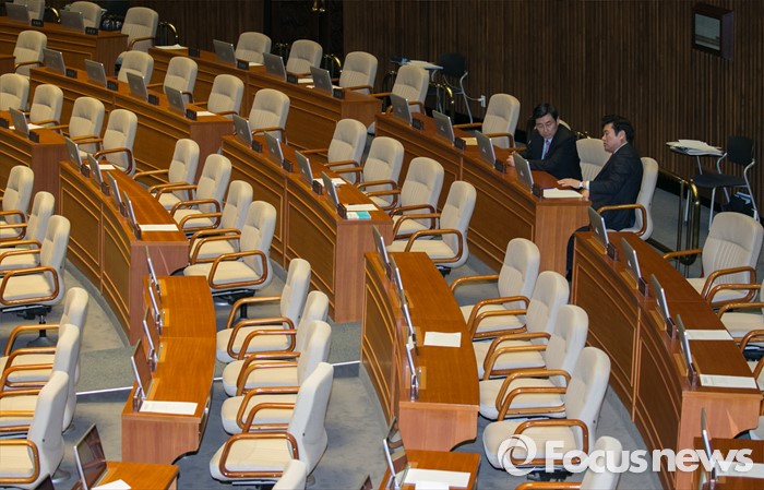 | △ 텅 빈 본회의장서 만난 여야 원내대표 |