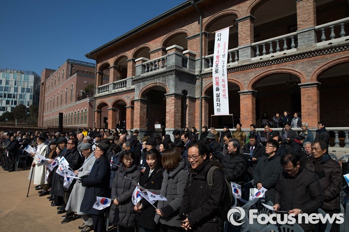 (서울=포커스뉴스) 제97주년 삼일절을 맞은 1일 오후 서울 중구 덕수궁 중명전에서'3ㆍ1 독립운동 기념 겨레의 합창-333인 선언' 행사가 진행되고 있다.