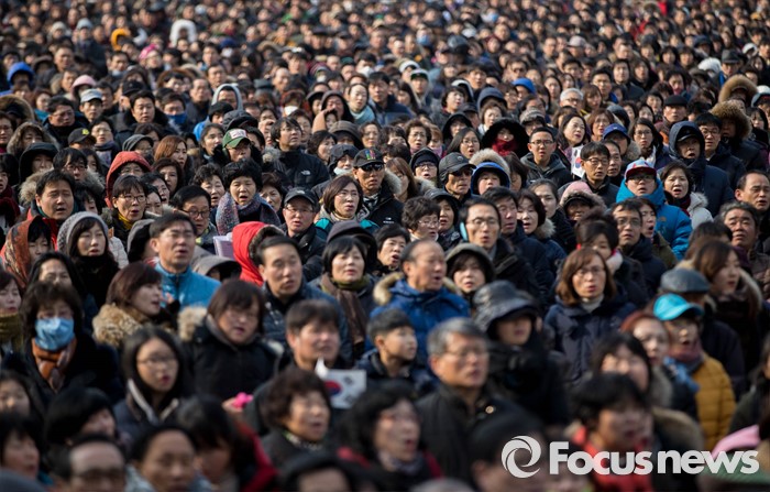 (서울=포커스뉴스) 1일 오후 서울 시청 앞 광장에서 열린 '북핵폐기 삼일절 국민대회 및 구국기도회'에 참석한 보수단체 회원들이 애국가를 부르고 있다.