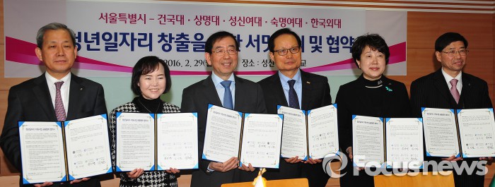 지난달 29일 오후 성신여대에서 열린 ‘청년일자리 창출을 위한 서밋회의 및 협약식’에서 서울지역 5개 대학 총장은 박원순 서울시장을 초청해 청년실업 해소와 일자리 창출을 위한 해결책을 논의하고 이같은 협약을 맺었다.