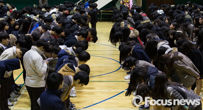 | △ 인사하는 단원고 신입생들과 재학생들 |