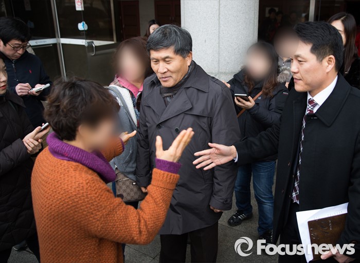 (서울=포커스뉴스) 2일 오전 경기도 안산시 단원구 올림픽기념관에서 열린 단원고등학교 입학식에서 김동민 경기도교육청 정책보좌 장학관이 신입생 학부모들로부터 항의 받고 있다.