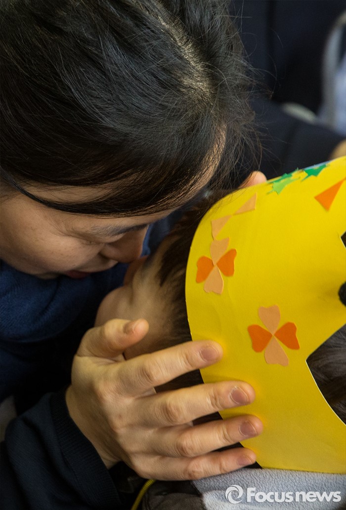 (서울=포커스뉴스) 2일 오전 서울 이태원 초등학교에서 열린 2016학년도 입학식에 참석한 신입생이 엄마와 얼굴을 부비고 있다.