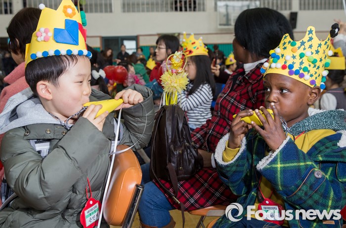 (서울=포커스뉴스) 2일 오전 서울 이태원 초등학교에서 열린 2016학년도 입학식에 참석한 신입생들이 오카리나를 불고 있다.