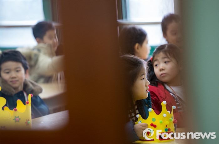 (서울=포커스뉴스) 2일 오전 서울 이태원 초등학교에서 열린 2016학년도 입학식에 참석한 어린이들이 담임 선생님의 안내를 듣고 있다.