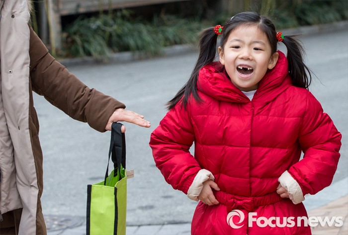 (서울=포커스뉴스) 2일 오전 서울 이태원 초등학교에서 열린 2016학년도 입학식에 참석한 신입생이 엄마와 대화하고 있다.