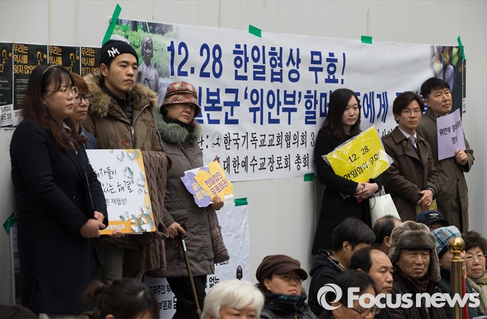 | △ '위안부 피해 할머니들에게 사과를!' |