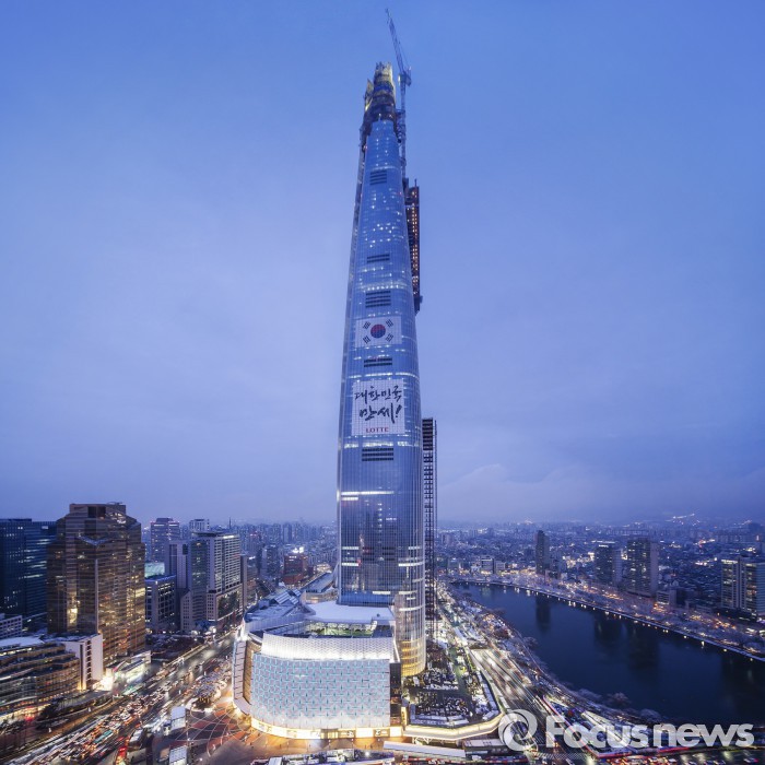 (서울=포커스뉴스) 롯데월드타워(제2롯데월드)가 3.1절을 맞아 롯데월드타워에 ‘대한민국 만세’ 메시지를 부착했다고 2일 밝혔다.