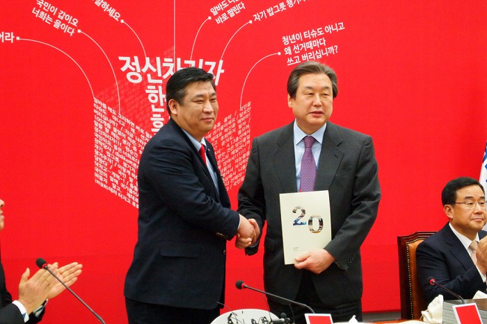 이후 '소상공인 정책과제' 전달식을 갖고 새누리당 김무성에게 5개의 공통과제와 24개의 지역별·업종별 정책과제를 제출했다.