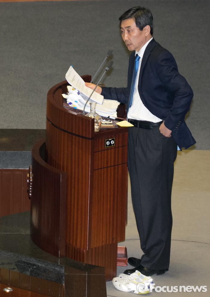 | △ 운동화는 그대로, 토론 이어가는 이종걸 |