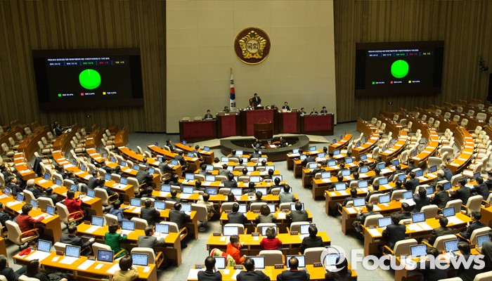 (서울=포커스뉴스) 2일 오후 서울 여의도 국회에서 열린 340회 국회(임시회) 7차 본회의에서 국민보호와 공공안전을 위한 테러방지법안에 대한 수정안(주호영 의원 외 156인 발의)가 재석 157인 중 찬성 156인, 반대 1인으로 통과되고 있다. 야당은 이날 여당의 수정안에 반발해 표결에 참여하지 않은 채 퇴장했다.