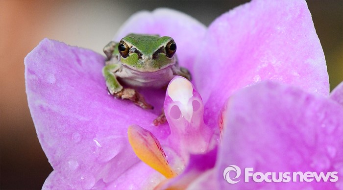 호접란 위 청개구리