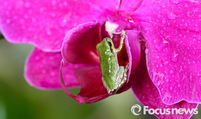 (청주=포커스뉴스) 경칩을 앞둔 3일 오전 충북 청주시 오창읍 충북농업기술원 화훼온실에서 청개구리가 겨울잠에서 깨어나 모습을 보이고 있다.