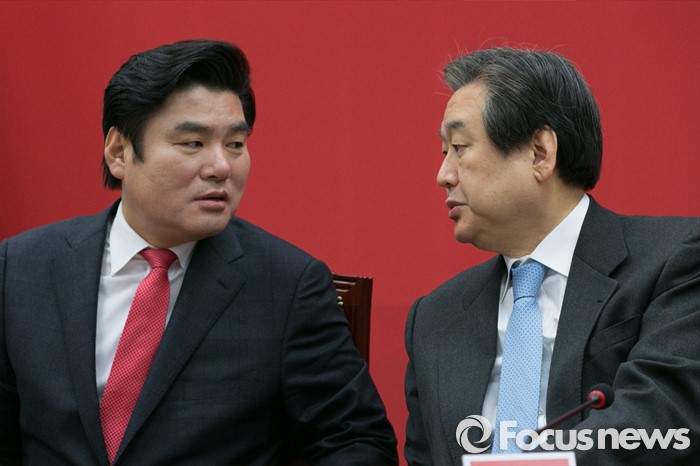 (서울=포커스뉴스) 김무성(오른쪽) 새누리당 대표와 원유철 원내대표가 3일 오전 서울 여의도 국회에서 열린 최고위원회의에 참석해 대화하고 있다.