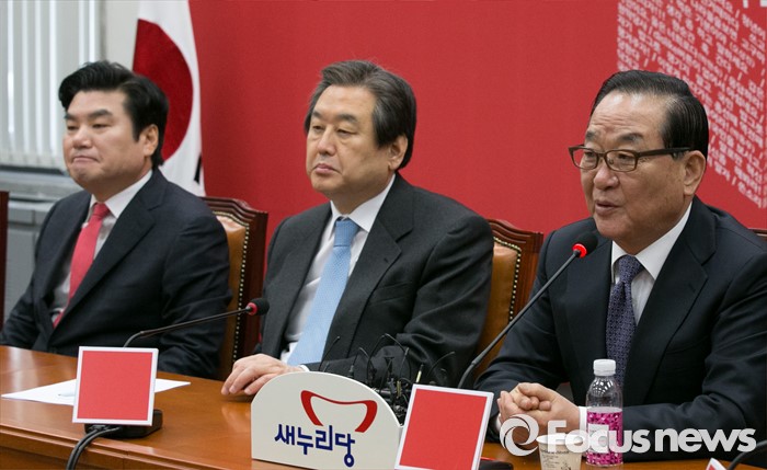 | △ 서청원 발언 경청하는 김무성·원유철 |