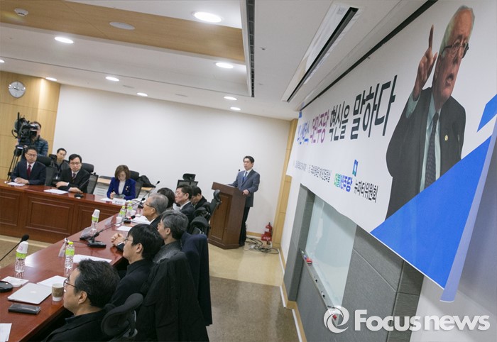 (서울=포커스뉴스) 3일 오전 서울 여의도 국회 의원회관에서 더불어민주당 뉴파티위원회 주최로 열린 '버니 샌더스 더민주 혁신을 말하다' 토론회에 참석한 김종인 비대위 대표가 인사말을 하고 있다.
