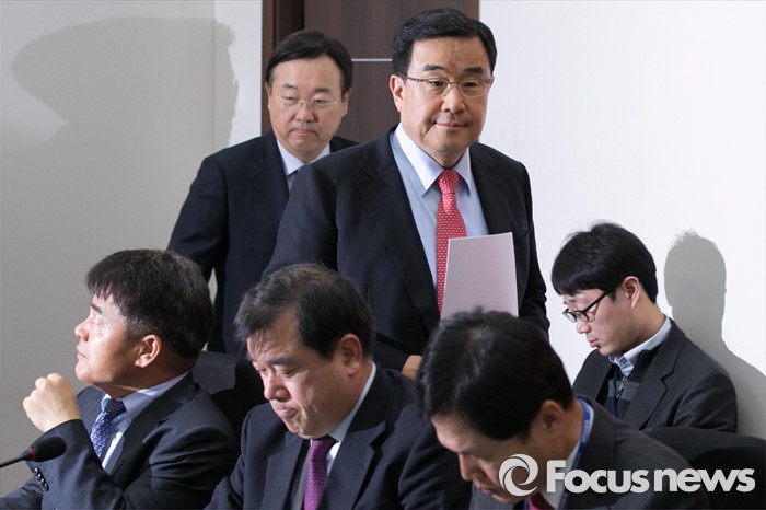 | △ 기자간담회 입장하는 김정훈·김종석 |