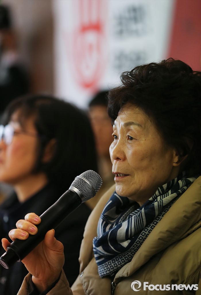 (서울=포커스뉴스) 3일 오전 서울 참여연대 아름드리홀에서 열린 '2016 총선시민네트워크 1차 공천부적격자 발표 기자회견'에 참석한 용산참사 유가족 전재숙씨가 공천부적격자를 발표하고 있다.