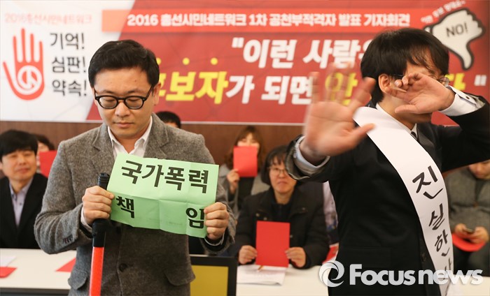 이날 총선시민네트워크측은 황우여, 최경환, 김진태, 박기준, 이노근, 김석기, 한상률, 김용판(새누리당)과 김현종(더불어민주당) 9명의 예비후보자를 공천부적격자로 선정해 발표했다.