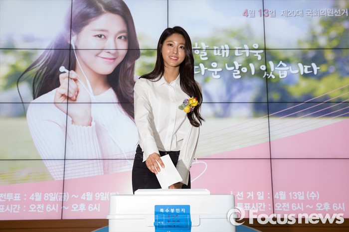 (과천=포커스뉴스) 3일 오후 경기도 과천시 중앙선거관리위원회에서 열린 '아름다운 선거 홍보대사 위촉식'에서 그룹 AOA의 가수 설현이 제20대 국회의원선거상황실에 마련된 모의 사전투표를 체험하고 있다.
