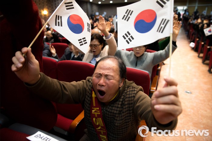 (서울=포커스뉴스) 3일 오후 서울 종로 한국기독교100주년 기념관에서 열린 기독자유당 창당대회에서 참가자들이 기도를 하고 있다.