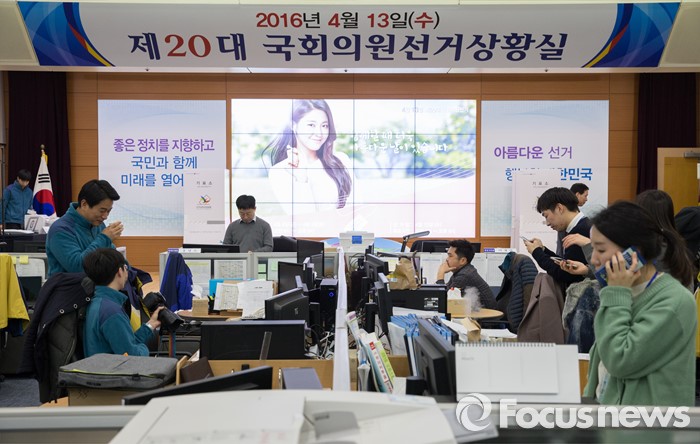 (과천=포커스뉴스) 2016 제20대 국회의원선거를 40여일 앞둔 3일 오후 경기도 과천시 중앙선거관리위원회에 마련된 선거상황실에서 직원들이 업무에 열중하고 있다.