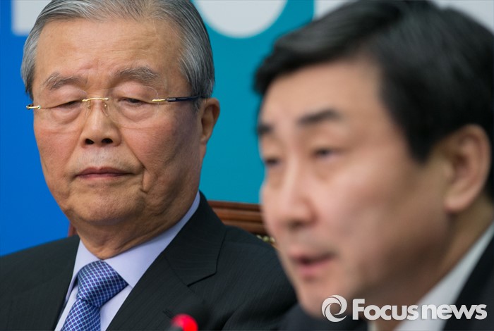 (서울=포커스뉴스) 김종인(왼쪽) 더불어민주당 비대위 대표가 4일 오전 서울 여의도 국회에서 열린 비대위-선대위 연석회의에 참석해 이종걸 원내대표의 발언을 듣고 있다.