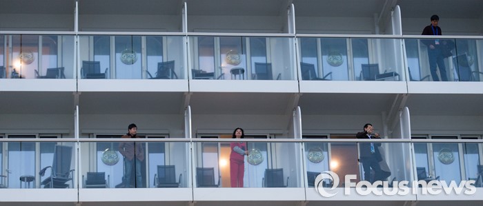 (인천=포커스뉴스) 4일 오전 인천 연수구 송도신항에 정박해 있는 아시아 최대 크루즈인 '퀀텀 오브 더 시즈'호에서 관광객들이 밖을 바라보고 있다.