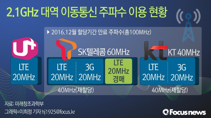 현재 경쟁이 가장 치열할 것으로 예상되는 주파수는 2.1㎓ 대역의 20㎒ 폭이다. 현재 이 주파수 대역에서는 SK텔레콤이 60㎒ 폭, KT가 40㎒ 폭, LG유플러스가 20㎒ 폭을 각각 사용하고 있다. 2.1㎓ 대역은 해외에서도 3G나 LTE용으로 많이 쓰이는 공통대역이어서 국제 로밍과 단말기 호환이 가능하다. 특히 현재 이통 3사 모두 2.1㎓ 대역에서 LTE 서비스를 제공하고 있어 추가 투자를 하지 않고도 곧장 기존에 보유하고 있던 주파수와 연계해 서비스를 시작할 수 있다. 2.1㎓가 '황금 주파수'로 불리는 이유다.