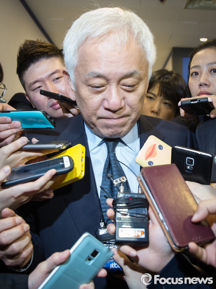 (서울=포커스뉴스) 선거대책 회의를 마친 김한길 국민의당 선대위원장이 4일 오전 서울 마포구 국민의당 당사에서 기자들의 질문을 받으며 당사를 빠져나고오 있다.