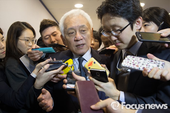 (서울=포커스뉴스) 선거대책 회의를 마친 김한길 국민의당 선대위원장이 4일 오전 서울 마포구 국민의당 당사에서 기자들의 질문을 받으며 당사를 빠져나고오 있다.