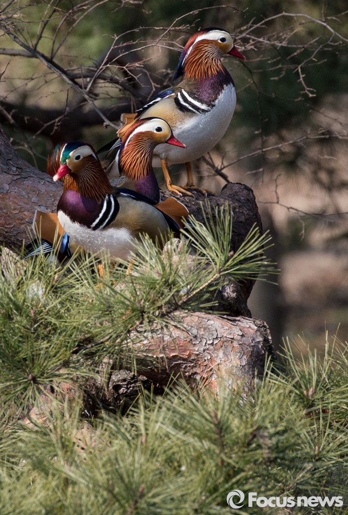 (서울=포커스뉴스) 동면하던 동물이 땅속에서 깨어난다는 경칩을 하루 앞둔 4일 오전 서울 종로구 창경궁 춘당지에서 원앙들이따스한 봄볕을 쐬고 있다.