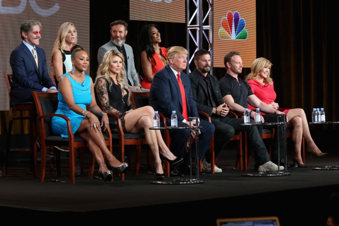 2015년 1월 캘리포니아주 패서디나에서 텔레비전 비평가 협회 회원들과 자리를 함께 한 트럼프(붉은 넥타이 맨 사람).(Photo by Frederick M. Brown/Getty Images)