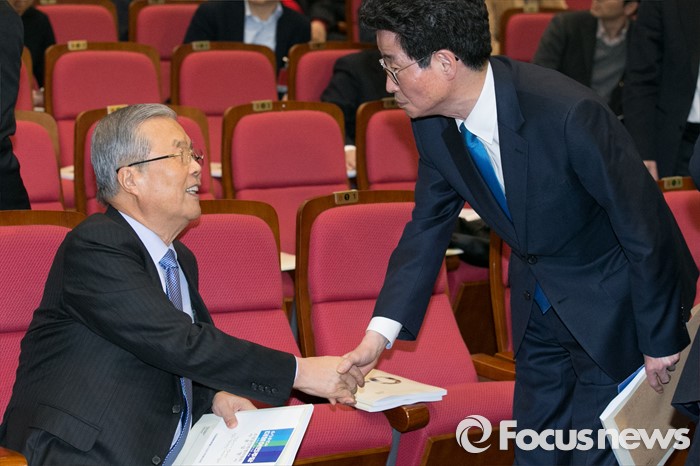 | △ 악수하는 김종인·이목희 |