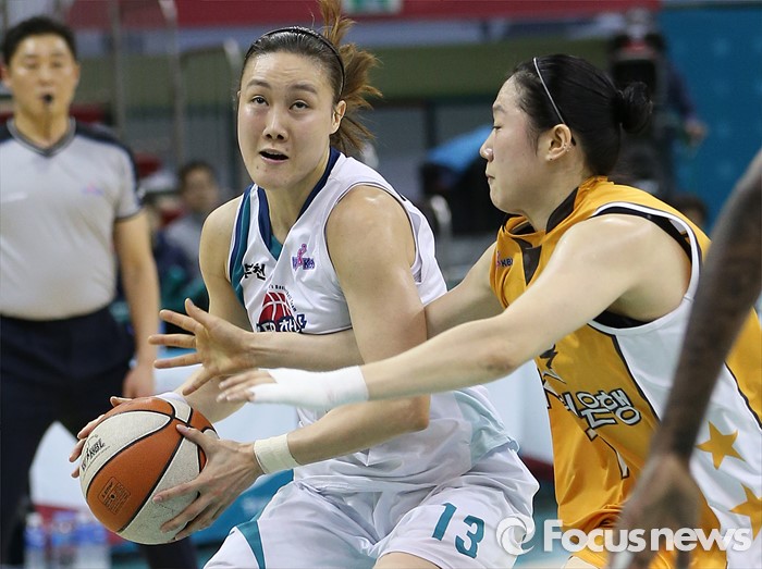 (부천=포커스뉴스) 6일 부천체육관에서 열린 2015-2016 여자프로농구 KEB하나은행-KB스타즈 경기에서 KB스타즈 강아정이 KEB하나 김정은의 볼을 가로채려 달려들고 있다.