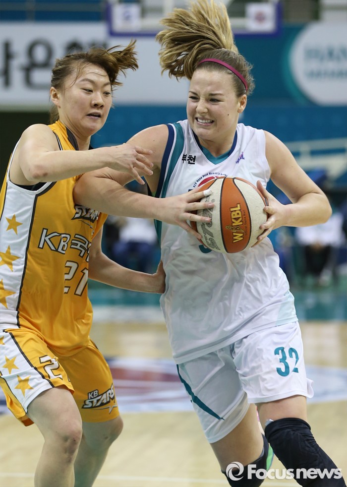 (부천=포커스뉴스) 6일 부천체육관에서 열린 2015-2016 여자프로농구 KEB하나은행-KB스타즈 경기에서 KEB하나 트리샤 리스턴이 KB스타즈 김진영의 수비를 따돌리며 돌파를 시도하고 있다.