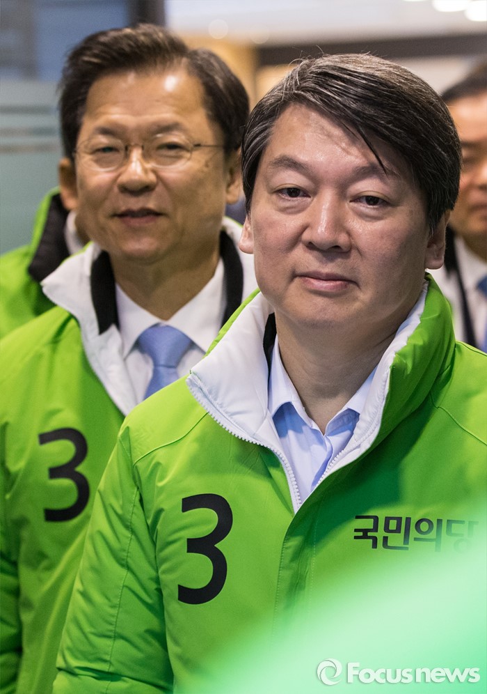 (서울=포커스뉴스) 7일 오전 서울 마포구 당사에서 열린 선거대책위원회의에 천정배(왼쪽부터), 안철수 국민의당 공동대표가 참석하고 있다.