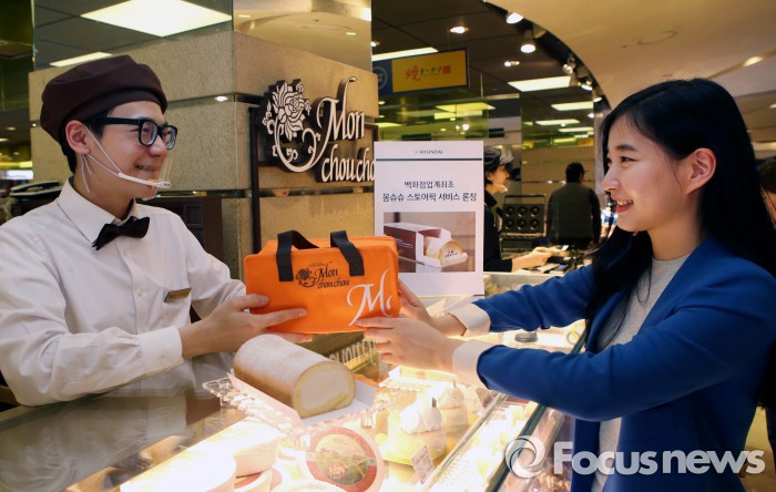임한오 e커머스팀장은 “상반기 중에 유명 디저트 브랜드의 참여를 확대하고, 사용 가능한 점포도 늘릴 예정”이라며 “앞으로도 현대백화점의 온-오프라인 쇼핑 채널을 통해서 소비자에게 새로운 쇼핑 경험을 제공하기 위한 다양한 마케팅을 시도할 것”이라고 말했다.현대백화점에서 소비자가 몽슈슈 디저트를 구입하고 있다.<사진제공=현대백화점>