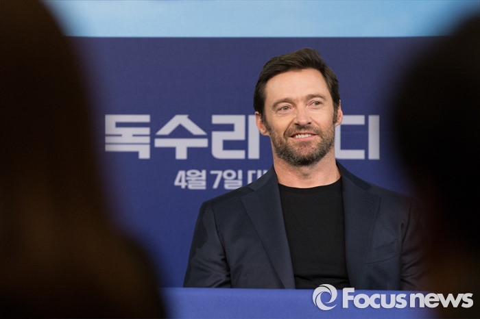 (서울=포커스뉴스) 7일 오전 서울 종로구 포시즌스 호텔 서울에서 열린 영화 '독수리 에디' 기자간담회에 배우 휴잭맨이 참석하고 있다.