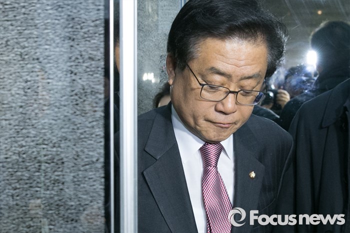 (서울=포커스뉴스) 공천 탈락 통보를 받은 김태환 새누리당 의원이 7일 오전 서울 여의도 국회에서 열린 최고위원회의에 참석한 뒤, 기자들의 질문을 들으며 승강기에 오르고 있다.