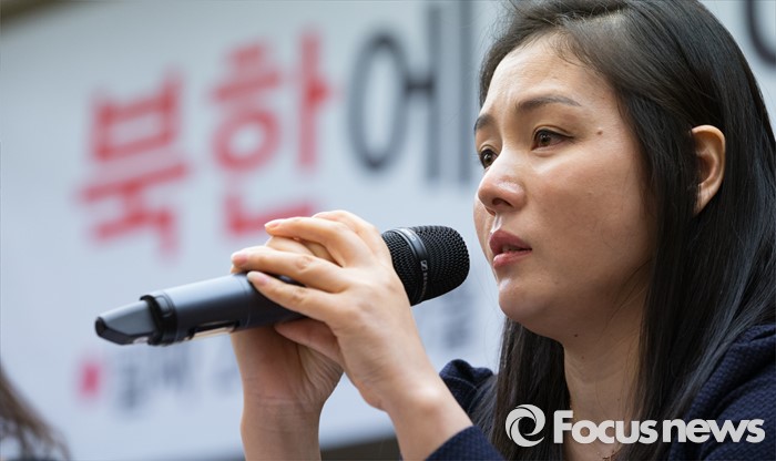 (서울=포커스뉴스) 세계 여성의 날을 하루 앞둔 7일 오전 서울 중구 프레스센터에서 탈북여성단체인 뉴코리아여성연합 회원들이 북한의 여성 인권유린사례를 알리는 기자회견을 하고 있다.