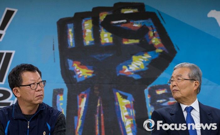(서울=포커스뉴스) 7일 오후 서울 중구 민주노총을 방문한 김종인(오른쪽) 더불어민주당 비상대책위원회 대표가 최종진 민주노총 위원장직무대행을 만나 대화하고 있다.