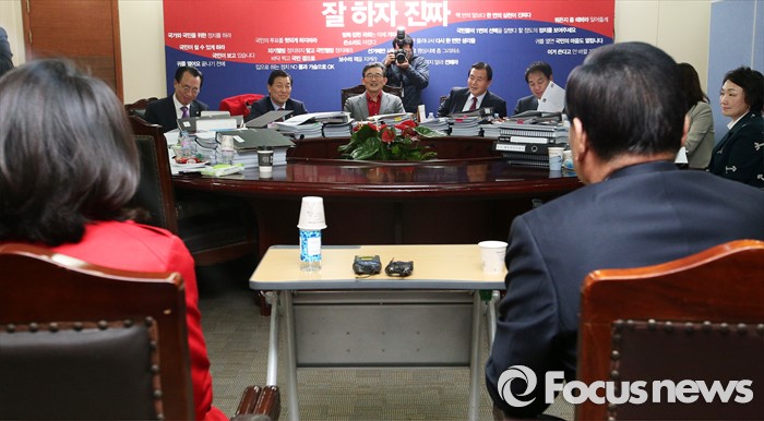 (서울=포커스뉴스) 이한구 새누리당 공천관리위원장이 7일 오후 서울 여의도 당사에서 열린 공천 면접에서 경기 화성갑에 출마하는 서청원, 리은경 예비후보와 대화를 나누고 있다.