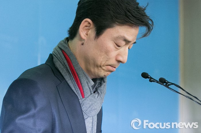 (서울=포커스뉴스) 송호창 더불어민주당 의원이 8일 오전 서울 여의도 국회 정론관에서 거취표명 기자회견을 마친 뒤, 인사하고 있다. 이 자리에서 송 의원은 "당의 공천배제 결정을 받아들이고, 총선 불출마를 결심했다"고 밝혔다.