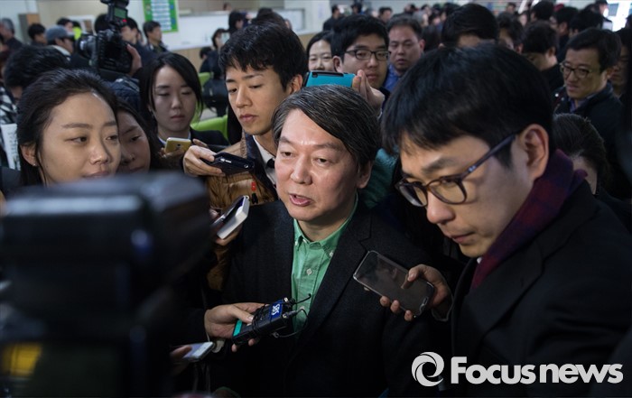 (서울=포커스뉴스) 안철수 국민의당 상임공동대표가 8일 오전 서울 노원구 도봉운전면허시험장 내 카페에서 노원병 출마선언 기자회견을 마친 후 기자들의 질문을 받고 있다.