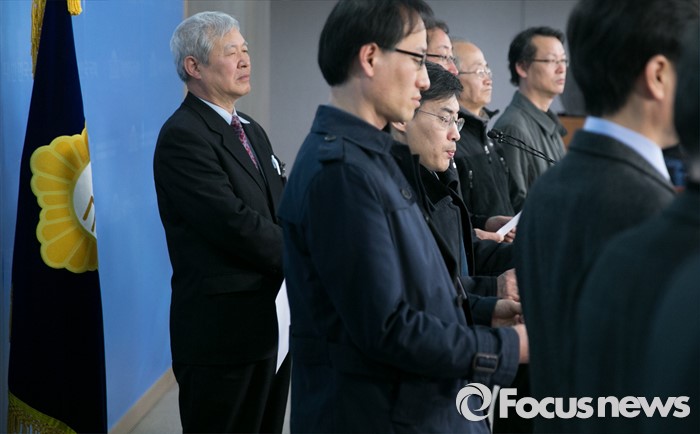 (서울=포커스뉴스) 8일 오전 서울 여의도 국회 정론관에서 야권의 단합과 2016년 총선 승리를 위한 수도권연대 회원들이 발족 및 야권 단일화를 촉구하는 기자회견을 하고 있다.