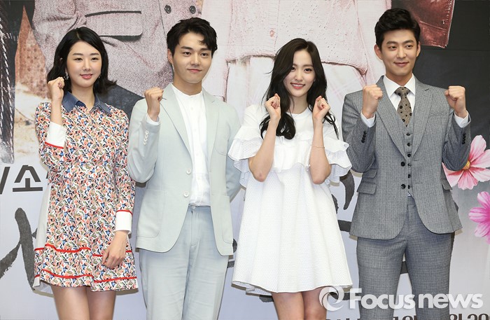 (서울=포커스뉴스) 8일 오후 서울 영등포구 KBS 국제회의실에서 열린 KBS2 TV소설 '내 마음의 꽃비' 제작발표회에 참석한 배우 정이연(왼쪽부터), 지은성,나해령, 이창욱이 포토타임을 갖고 있다.